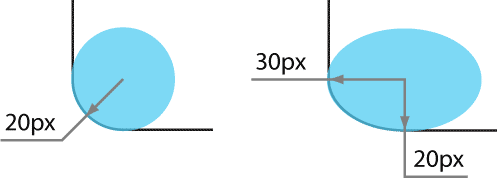Необязательное второе значение предназначено для создания эллиптического уголка, первое значение при этом устанавливает радиус по горизонтали, а второе — радиус по вертикали (рис. 1).