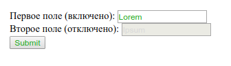 Следующий пример делает цвет текста средне-зелёного оттенка, когда поле включено, и серым, когда отключено. Это позволяет понимать пользователю какие элементы интерактивны, а какие нет.