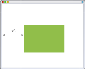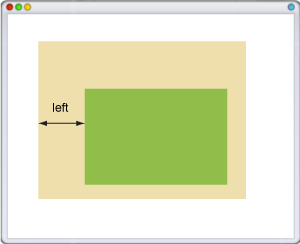 Свойство left для позиционированного элемента определяет расстояние от левого края родительского элемента, не включая отступ, поле и ширину рамки, до левого края дочернего элемента.