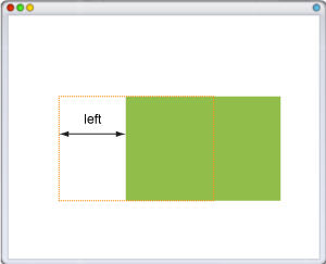 В случае значения relative, left отсчитывается от левого края исходного положения элемента (рис. 2).
