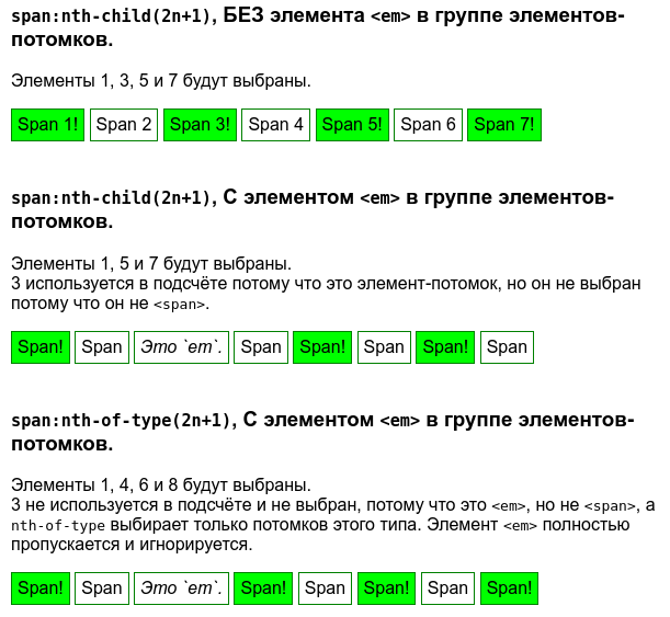 1 | 1 | Первый элемент, является синонимом псевдокласса :first-child |