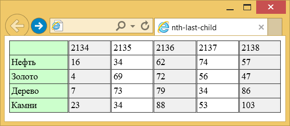 Применение псевдокласса :nth-last-child к колонкам таблицы