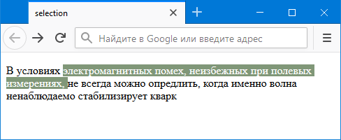 В данном примере при выделении текста он изменяет свой цвет и фон.
