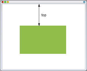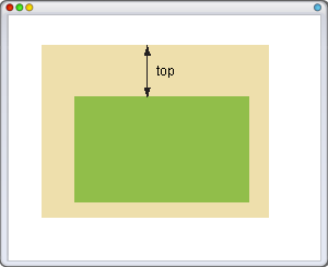 Свойство top для позиционированного элемента определяет расстояние от верхнего края родительского элемента до верхнего края дочернего элемента. Отсчёт координат зависит от значения свойства position. Если оно равно absolute, в качестве родителя выступает окно браузера и положение элемента определяется от его верхнего края (рис. 1).