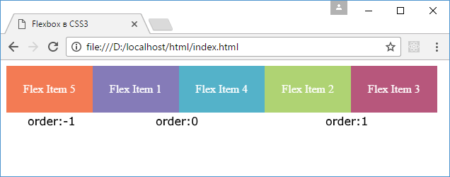 Свойство order позволяет установить группу для flex-элемента, позволяя тем самым переопределить его позицию внутри flex-контейнера. В качестве значения свойство принимает числовой порядок группы. К одной группе может принадлежать несколько элементов.