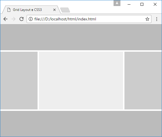 То есть в итоге у нас будет в гриде 3 х 2 = 6 ячеек. Но в разметке страницы определено три элемента с одноименными областями: header, sidebar, content. И свойство grid-template-areas как раз устанавливает, как эти области будут располагаться в ячейках грида: