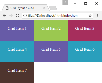 По умолчанию все элементы располагаются по порядку горизонтально, если места в строке больше нет, то элементы переносятся на следующую строку. Но с помощью свойства grid-auto-flow можно изменить направление элементов. Это свойство принимает два значения: