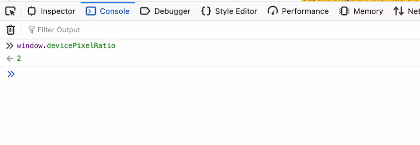 Соотношение между логическими и физическими пикселями устройства - это отношение пикселей устройства для данного дисплея (DPR). Значение DPR рассчитывается путем деления фактического разрешения экрана устройства на количество CSS-пикселей области просмотра.